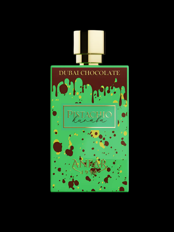 ¡El famoso chocolate de kunafa con pistacho, aclamado en todo el mundo, ahora renace como una fragancia! Las lujosas pistachas, la dulce kunafa y el intenso chocolate de Dubái se unen en un aroma gourmet que cautiva desde el primer instante.